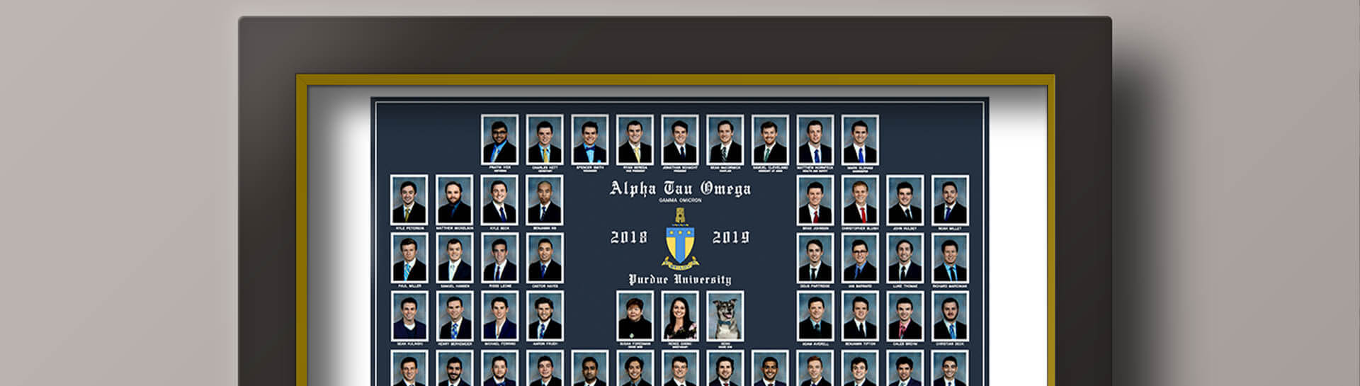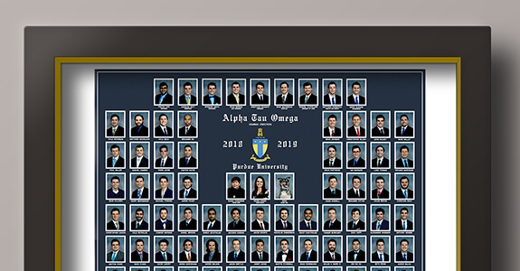 A composite is a photo montage of every active member in your current Greek chapter or other professional organization. Composite pictures include your chapter’s name, university, crest, and academic year. We can also add personalized hand-painted embellishments like crests, seals, banners, flowers, or athletic logos to any composite for a unique touch. To see composite samples, click here. Our talented FCS retouchers color correct and photoshop every single portrait until you are satisfied. Changes can be readily made at any time. Our friendly customer service team is ready to help you every step of the way.